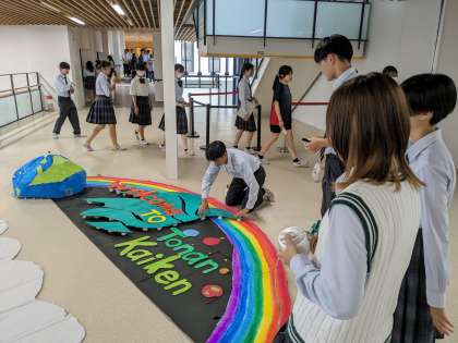 文化祭2023 その2 舞台準備 公開日 2023/09/06 更新日 2023/09/06 校長室より 1年生による校内装飾の準備。校内装飾の間を縫ってアリーナでの舞台リハーサル。さらに学級旗の作成。