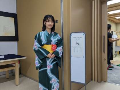 書道部によるホールでの書道パフォーマンス 茶道部にる呈茶です