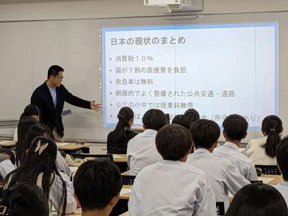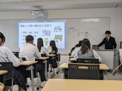 第1部では税を中心に政治参加について考え、第2部では架空の候補者の政策や生徒の身近な問題や地域の課題を題材にして、その是非を問うことをテーマとして設定し、グループ学習やディスカッションを行いました。最後に模擬投票を行うことで様々な立場の意見を聞き、自分の立場を決めることの重要性に気づくことを目標としました。