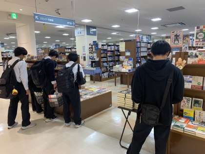 11月7日(火)選書会を行いました。有志生徒たちが京都イオンの大垣書店に行き,学校の図書館に置きたい本を選びました。生徒たちはあらかじめ本を調べておいており,目当ての本を購入することができました。約130冊の本が増えたので,図書館に来て手にとってみてください。