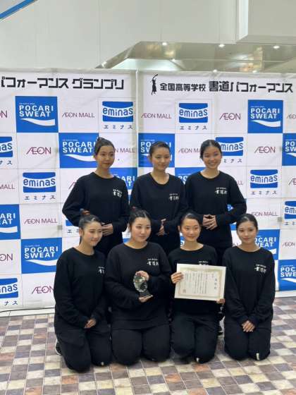 11月23日(木)、「第3回全国高等学校書道パフォーマンスグランプリ東近畿北陸大会」(イオンモールKYOTOで開催)において、本校の書道部が優勝しました。