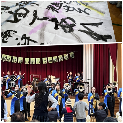 朝の開幕には塔南・開建高校書道部がパフォーマンスを行い、昼には吹奏楽部がPops曲演奏とマーチング演奏を行いました。