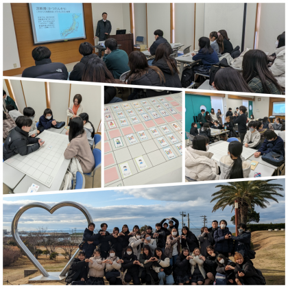 セミナールームをお借りし、北淡震災記念公園の職員の方から当時の北淡町(現北淡市)の被災状況のお話し、龍谷大学生からは能登半島地震のボランティア活動についての報告を聴講いたしました。昼食をはさみ、避難所運営ゲーム(HUG)や断層保存ゾーンを見学し、最後に公園周辺の復興状況について石原先生より解説していただきました。