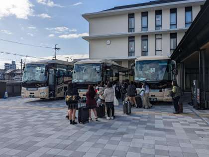 研修旅行1日目(朝) 公開日 2024/03/10 更新日 2024/03/10 校長室より 開建高校1年生は、本日3月10日(日)から4日間の研修旅行に出発いたしました。 「山」「都市」コースは京都駅から、「海」「村」「島」「森」コースは学校からバスで出発いたしました。この4日間は、未知なる体験、チームビルド、新たなパースペクティブの獲得に挑戦する3泊4日となります。