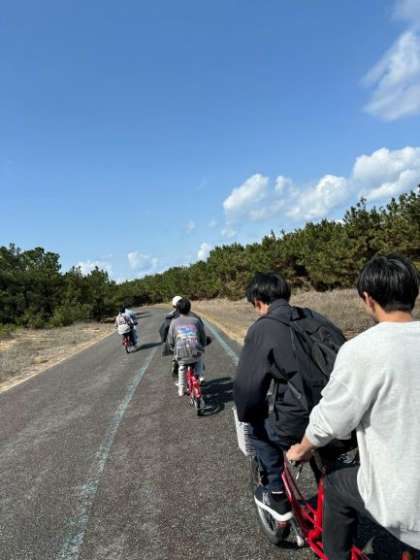 研修旅行3日目 公開日 2024/03/12 更新日 2024/03/12 校長室より 「山」コース」 3日目は研修旅行委員企画の1日 「コース全員が未体験を経験する」をテーマにしています。 まずは福岡海の中道海浜公園にてフィールドワークを行っています。 自然と動物を感じてきます! 二人乗り自転車を漕いで目指すは「海」!