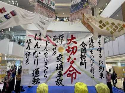 4月5日(金)、イオンモールKYOTOで実施された「令和6年春の全国交通安全運動スタート式」で書道パフォーマンスを披露する機会をいただきました。多くの方にパフォーマンスをお見せすることができ、とても嬉しく思います。書道パフォーマンスを披露する場をいただきありがとうございました。これからも皆様に喜んでいただけるようなパフォーマンスができるように日々精進していきますので、どうぞご理解・ご支援のほどよろしくお願い申し上げます。