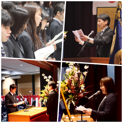 学校長による入学許可、式辞の後に、新入生代表が「多種多様な人々との対話・協働を通して多くのことに興味を示し、やってみたいことに挑戦する心を大切に、よりよい未来を協創する」と宣誓してくれました。