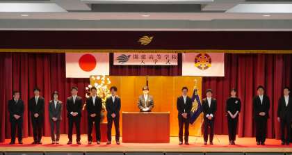 結びに、新入生の皆さん、いよいよ本日から開建高校2期生としての生活が始まります。無限の可能性を秘めた皆さんが、自らの志や夢をしっかりと思い描き、自らの成長を実感し自己実現が達成できるよう、そして、健やかに成長されることを心から願いまして、式辞といたします。