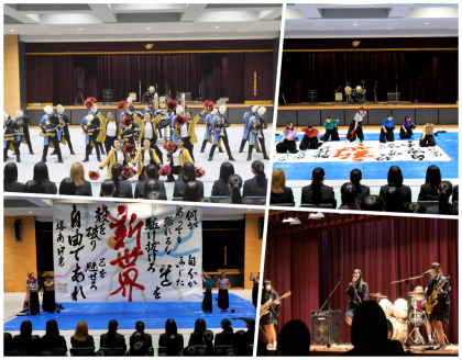 書道部は全国大会で披露したパフォーマンス書道を披露。最後に掲げられた「新世界」は新入生に相応しいですね。