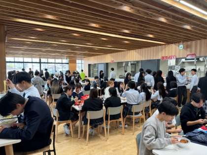 校内のカフェテリアは大人気で、昼休みには生徒がたくさん利用しています。