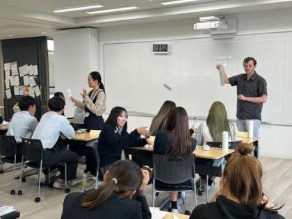 大人数のクラス編成や、他者と協働することに取り組む開建ならではの授業です。