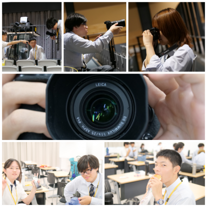 パンフレット写真の撮影から参加を重ねているベテランもいれば、今回の撮影が初めてというカメラに興味がある生徒も。5名の開建生でビデオカメラ1台とデジタル一眼レフカメラ4台で撮影をしていきました。