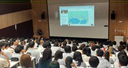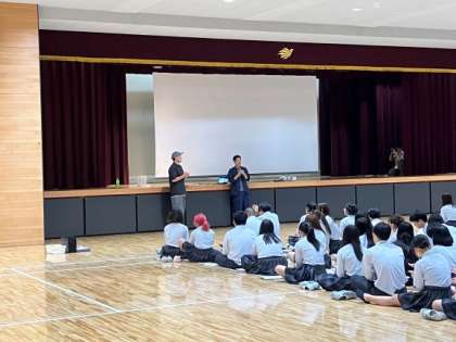 今回は 株式会社マガザン代表取締役 岩崎様と株式会社SOU代表取締役 仲田様にお越し頂き、講演会とワークショップを行いました。講演会では、「変えられること、変えられないこと」をテーマとしてお話しいただきました。その次に行われたワークショップでは、「未来の私が喜ぶ歴史家になってみよう」というテーマで、過去をどのように捉えて未来につなげるか、今の積み重ねが未来をつくることをワークテーマとして、考えたりグループの人と意見交換を行いました。企業をしてみたいと思っていた生徒の感想では、自分が高校生の今何をしたらいいのかをより具体的に考えるきっかけになったと言っていました。本日はご協力いただきありがとうございました。