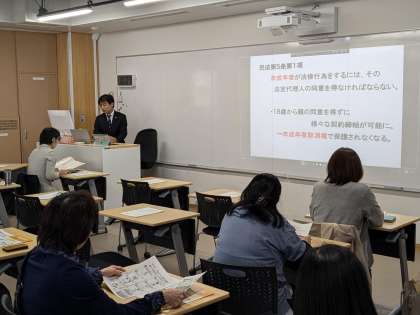 成年年齢が20歳から18歳に引き下げられたことに伴い、近年、スマートフォンやネット等に関する契約トラブル、ブラックバイトや悪質商法など若年層を脅かす問題が急増しております。今回は「契約」をキーワードに、親また人生の先輩として、子どもが巻き込まれたトラブルに慌てず、焦らず対応する心構えをご講演いただきました。多数のご参加ありがとうございました。
