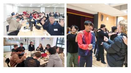 12月11日(水)にオーストラリアにあるシャールトン・クリスチャン・カレッジから20名の高校生と3名の教職員の方々にお越しいただき、開建高校1年生との交流活動を行いました。1年2組では歓迎セレモニーとアイスブレイクのクイズ大会、1年1組では日本の子どもの遊びやジェスチャーゲーム、1年3組ではディスカッションや日本の伝統的な遊びといった、それぞれ工夫を凝らした企画で楽しみました。司会進行や運営も開建生自身が英語で進めました。中々英語が出てこず苦しみながらも、何とか伝えようとする姿が印象的でした。また、双方の生徒同士で談笑する様子もあちこちで見られ、英語でのコミュニケーションを楽しんでいました。英語を学ぶことや異文化に触れることの楽しさを知り、日々の英語学習につながると嬉しいです。