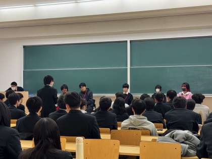 また、先端理工学部の大学院生さんは7月の訪問時にもお話しいただいたのですが、その後の研究や活動の報告をしていただき、生徒たちも興味深く聞き入っていました。