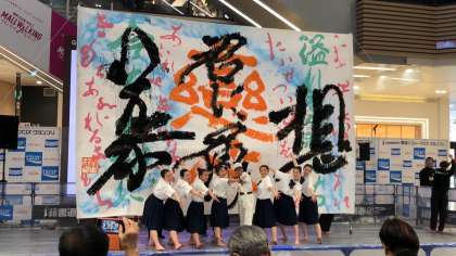 このたび、第4回全国高等学校「書道パフォーマンス」グランプリ決勝大会に出場いたしました。残念ながら入賞には至りませんでしたが、他の学校の素晴らしい演技を間近で学ぶことができ、大変貴重で刺激的な経験となりました。