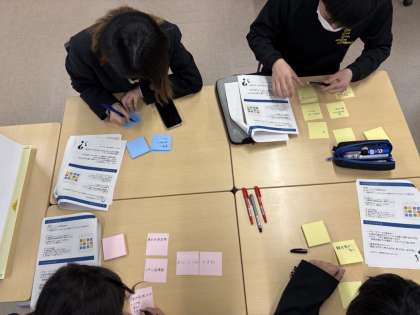 本校未来協創会議のメンバーが「京都の未来を考える」活動に参加しました! 1月30日(木)、京都市都市経営戦略室の方々をお招きして、未来協創会議の生徒(1・2年8名)が「未来の京都」について考えました。京都市の掲げる「世界文化自由都市宣言」やその目指す姿の実現に向かうための基本計画について講義いただいた後、京都市の良い点や誇れる点、改善点や惜しい点などについて考え、最後には「2050年の理想の京都像」へ思いを巡らせました。 今日の内容を参考に、今後はどうすれば基本計画を一般の方に周知し、行動に移していくことができるのかについて考え、市役所の方々へプレゼンしていきます。