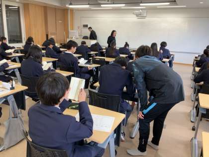 2月13日、八条中学校中学1年生のみなさんが、本校の図書館2階ラーニングコモンズを活用し、職業調べを行いました。本校の進路に関する書籍を手に取り、興味のある職業について熱心に調べている様子が印象的でした。今回の活動が、今後の学びに繋がってくれると嬉しく思います。