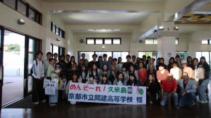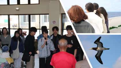 午前中は飛行機で那覇に移動し、午後よりフェリーで久米島に向かいました。今日は移動の1日となりましたが、飛行機から眺める空の様子や、フェリーのデッキから見える海を見ながら楽しんで過ごしていました。久米島に到着後は、久米島観光協会の方と民家さんに熱烈に歓迎して頂き、民家さんの出迎えで、民泊先に向かいました。