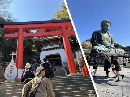 グルメを楽しみたいグループは横浜中華街や鎌倉小町通りで食べ歩き、横浜ラーメン博物館でラーメン作り。歴史を感じたいグループは横浜の洋館巡りや江島神社、鎌倉大仏の見学へ。アニメが好きなグループはスラムダンクで有名な鎌倉高校前で記念撮影、野球部メンバーは横浜スタジアム見学、などとそれぞれがやってみたかったことを形にしています。