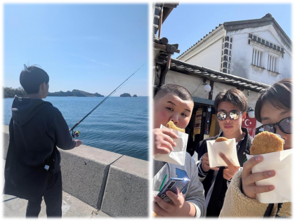 直島まで行き、瀬戸内海の魚を釣りに行く班、倉敷美観地区に行く班、瀬戸内海を横目にサイクリングをする班、児島のジーンズや陶芸、絵付けなどを体験する班、高松まで行きうどんを食べ歩く班、日本一の駄菓子屋さんに行く班など、さまざまあります。今日はそれぞれの「やってみたい」を形にしています。