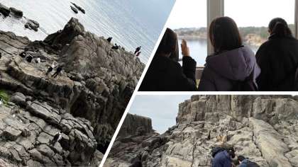 まず、古来より「神の島」とよばれ、現代ではパワースポット、心霊スポットとしても有名な雄島を訪ね、地学で学んだ流紋岩や、流紋岩からなる柱状節理・板状節理の奇岩を観察しました。また、越前松島水族館で牡蠣から真珠を取り出してネックレスを作ったり、越前松島の奇岩を観察したりと、各々の時間を過ごしました。