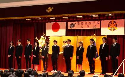 新入生の皆さんは開建高校の栄えある3期生として、本日からの新たな高校生活に向けて、大きな期待と少しの不安で胸いっぱいのことだと思っています。本日の喜びを忘れず、御家族の方々をはじめ、中学校でお世話になった先生方など、皆さんを支えてくださった方々への感謝の気持ちを持って高校生活を歩み出してください。