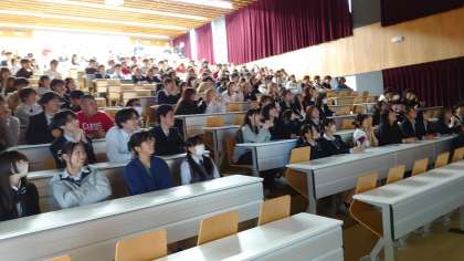 5月2日(金)、2年生ではクラス代表者会議が発案したレクリエーションで学級・学年の親睦を深めました。この日は本来、滋賀県にてバーベキューの予定でしたが荒天が予想されたため中止となり、急遽校内での活動となりました。まずは、トランプのババ抜き最強王決定戦です。決勝戦では中継映像を生徒実況と共にスクリーンに映し、みんなで観戦をしました。ババ抜きでこれほど盛り上がれるのかと思うほど、歓声が沸き上がっていました。その次は、校内かくれんぼ大会です。校内のどこかに隠れた、クラス代表者や担任団の教員を見つけるというものです。学年生徒全員で探しましたが、2名の教員が最後まで隠れきることができました。