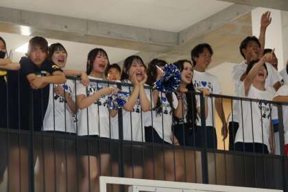 今年の3年生のsports festaは、バレーボールとドッヂボールの2種目を行いました。さらに今年は「応援の部」も設定され、競技の成績だけでなく、全員で優勝を目指す雰囲気づくりを意識しました。何とか次に繋ごうと最後までボールを追いかける姿や、各クラスの想いを表すクラスTシャツに身を包み、仲間のプレーを讃え合い、歌や拍手、歓声で必死に自クラスを応援している姿が印象的でした。