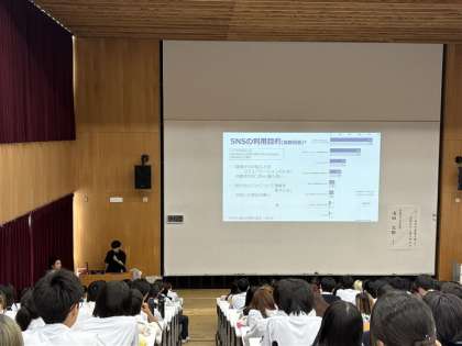 講演後の謝辞では、1年1組の生徒が「SNSの利用についての学びを通じて、情報発信の責任や慎重さの大切さに気づきました。今後も人権について考え続け、誰もが生きやすく、学校が楽しいと思える学年づくりを目指していきたい」と決意を述べました。