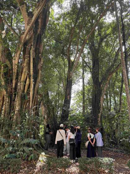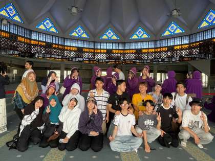 2年生海外研修 2日目 公開日 2025/07/20 更新日 2025/07/20 スクールライフ 一団はホテルで朝食を取った後、クアラルンプールの観光地を回りました。 マレーシア国王の王宮、独立記念碑、国立モスクなど、マレーシアの歴史や文化に触れて日本との違いを実感しました。 セントラルマーケットで昼食後、FRIM森林研究所にてガイド付きの熱帯雨林ツアーに参加しました。日本とは違う木や葉っぱの大きさ、セミや鳥の鳴き声を楽しみつつ、森林開発の及ぼす影響や植樹の大切さを学びました。