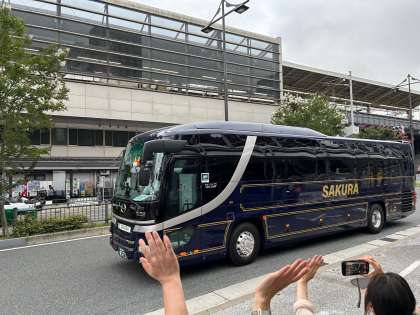 京都市教育委員会主催「京都市立高校グローバルリーダー育成研修」事業の参加生徒(本校からは2年生2名)が、7月23日(火)午前6時15分に京都駅八条口のアバンティ前に集合し、関西国際空港行きの貸切バスにて、現地での研修に向けて元気に出発しました。