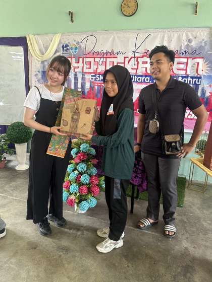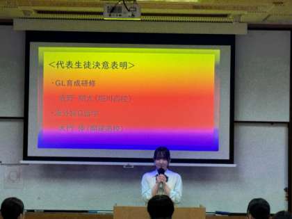 この生徒は1年次より、海外留学生を本校に招き、ゲームや座談会を通して、多様な国の文化や考え方に触れる「国際交流DAY」や、実際に海外研修旅行に行き、知見や問を深める取組に主体的に参加してきました。