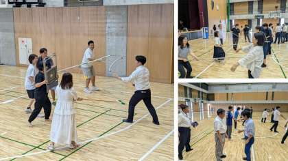 令和7年8月22日(金)、本校アリーナにて教職員を対象とした防犯訓練を実施しました。猛暑の中、アリーナでの開催となりましたが、教職員は汗を拭いながらも真剣な表情で訓練に臨みました。さすまたを手にした実技指導では、緊張感とともに現場対応のリアリティが漂い、まさに「もしもの時」に備える貴重な体験となりました。