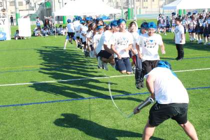 入場行進と選手宣誓に始まり、花形のリレーはもちろん、2人3脚や障害物競走といった個人種目、玉入れや大縄跳びといったチーム種目、さらに生徒発案の新種目「手つなぎおにごDX(デラックス)」など、多種多様な種目が行われました。