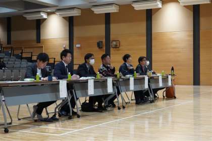 今回の審査員は、本校から校長・教頭、本プロジェクトで1年目からお世話になっている三彩食品の谷本様、さらに2年生のおにぎりプロジェクトの商品化に携わっていただいた企業から4名の方々にお越しいただきました。
