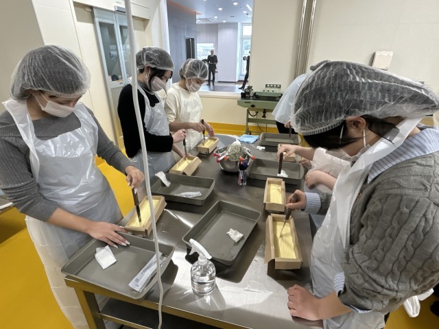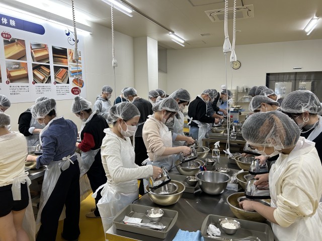 九州コース2日目午後は、カステラランドでカステラ作りを体験しました。