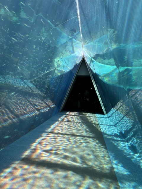 復興作業のお話の一方で、アクアマリンふくしまは「ふくしま海洋科学館」という立場も併せ持っており、研究テーマの発信をメインとしている施設であるというお話もただきました。その面で、黒潮や親潮のぶつかる潮目を再現している水槽があったり、日本唯一の完全養殖サンマを展示していたり、食育をテーマにして釣り場を設けていたりしている様子を、講演の後実際に自由散策して観察することができました。