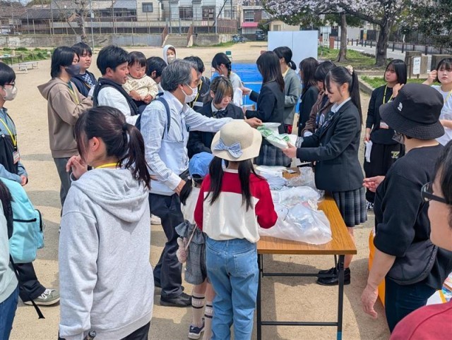 その後のお花見では、陽気な気候にきれいに咲いた桜の下で、地域の老舗和菓子屋である相生本舗様の和菓子や、チェリオ様からいただいたジュースを手に、楽しく交流しました。美術部の桜デッサン体験や、防災ボランティア・写真同好会の展示、魚釣りゲームに軽音楽部による弾き語りなど、開建高校の部活動による催しもあり、とても賑やかな時間を過ごすことができました。生徒たちは今回の取り組みを通して、企画を作り上げることの難しさや達成感、多様な方との関係の築き方、そして何よりも、自分たちの得意を生かし、地域の方と一緒に盛り上がることの楽しさを実感できました。