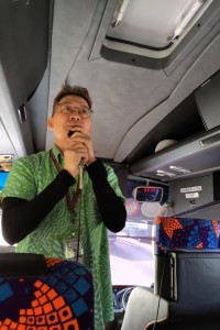 各日、移動中のバス内では現地ガイドのウィリアムさんによる文化等のレクチャーを受け...