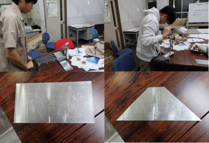 4年生土木系の実習で11月14日(木)に開催される文化祭に展示するため,生徒たちがアルミ材で旋回トラス橋を作製しています。アルミ材を切断,加工して部品を作り,出来上がった部品を組み立てて一つの作品になっていきます。もちろん「旋回トラス橋」なのでゆっくりと旋回していきます。この旋回する土台も鉄などの鋼材を加工して組み立てています。この土台にモーターを取りつけ乾電池をつなぐとトラス橋が旋回します。文化祭当日は会場となる呉竹館1階にこの「旋回トラス橋」を設置して皆さま方をお迎えいたします。