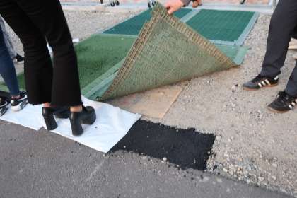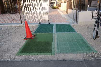 タンパーと呼ばれる器具を用いて舗装してくれました。