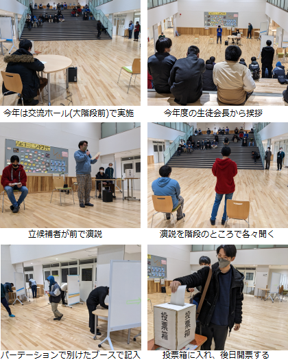 その後、あらかじめ公示のあった役員立候補者による演説が行われ、続いて信任・不信任を記入する投票が行われました。