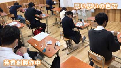 保健委員会では,校内美化による快適な学校環境づくりの一環として,オリジナル芳香剤づくりを行いました。