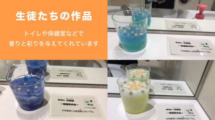完成した芳香剤は校内のトイレや保健室に設置され,香りと彩りを与えてくれています。