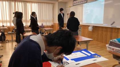 映像作品を発表するクラスは台本や構成が出来上がり,撮影に取り掛かっていたり,劇を発表するクラスは大道具をつくったり,各所で自分たちで積極的に活動する生徒の姿をみることができました。また今日は6時間目にキャリアプラス(希望者だけが履修する科目)の授業もありましたが,授業が終わったら急いでクラスの取り組みに参加していて,責任をもって取り組んでいることはもちろん,文化祭準備を楽しんでいる様子がうかがえます。