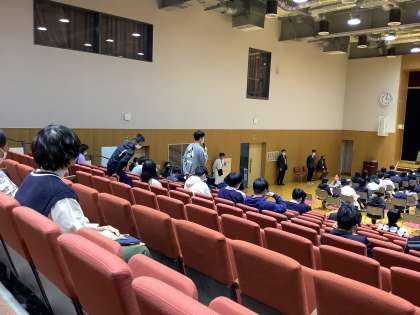 11月29日(火)のキャリアI、キャリアIIは呉竹館ホールで1、 2年生合同の授業を行いました。西京高校定時制の卒業生を迎え、専門学校と大学に進学した2人の先輩から「学校選びの時期や仕方」「受験勉強の開始時期」「現在学んでいること」など様々な話をお聞かせいただきました。進学希望、就職希望関係なく、2人の話から進学するという具体的なイメージを持つことができました。講演後は 2年次生から質問が複数あり、全体終了後も直接卒業生に質問をしにいく生徒の姿がありました。振り返りアンケートには「(高校で)勉強をする重要性」について書いていた生徒が多くおり、これからの学校生活に繋げてもらえればと期待しています。