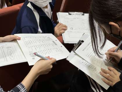 講演では、ストレスは無くすことはできないので、「解消法」ではなく「対処法」について詳しく教えていただきました。生徒は、一人一人のストレス対処法は違うが、睡眠がストレスの対処に関して最も重要であるということや、不安に思うことでも挑戦してみる方が結果的にストレスが少なくなるということを学びました。またグループワークを通して、様々なストレス対処法に触れることができました。