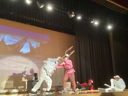 1年生は、各クラス10分で、1組が脚本の作成や撮影、映像の編集などを協力して動画を作成し、それを発表しました。2〜4組が舞台上で劇の発表を行いました。人気アニメやおとぎ話を題材に、オリジナルの要素も組み込んだ発表など、どのクラスにも様々な仕掛けや工夫が見られました。